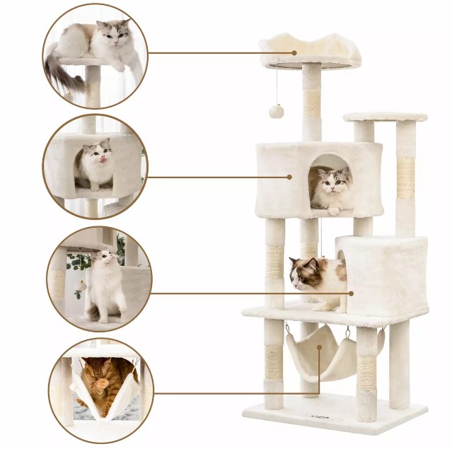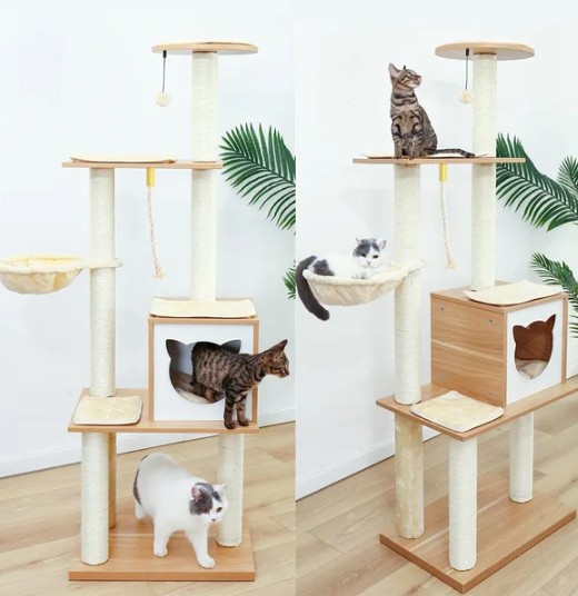 4. Ang kakayahang umangkop ay nakakatugon sa maraming mga pangangailangan: Bilang isang mahalagang pasilidad para sa pang -araw -araw na aktibidad ng pusa, ang multifunctional na pagganap ng mga puno ng pusa ay nakakatugon sa maraming mga pangangailangan ng mga pusa at nagbibigay ng mga pusa ng isang ligtas, komportable at kagiliw -giliw na kapaligiran sa pamumuhay.