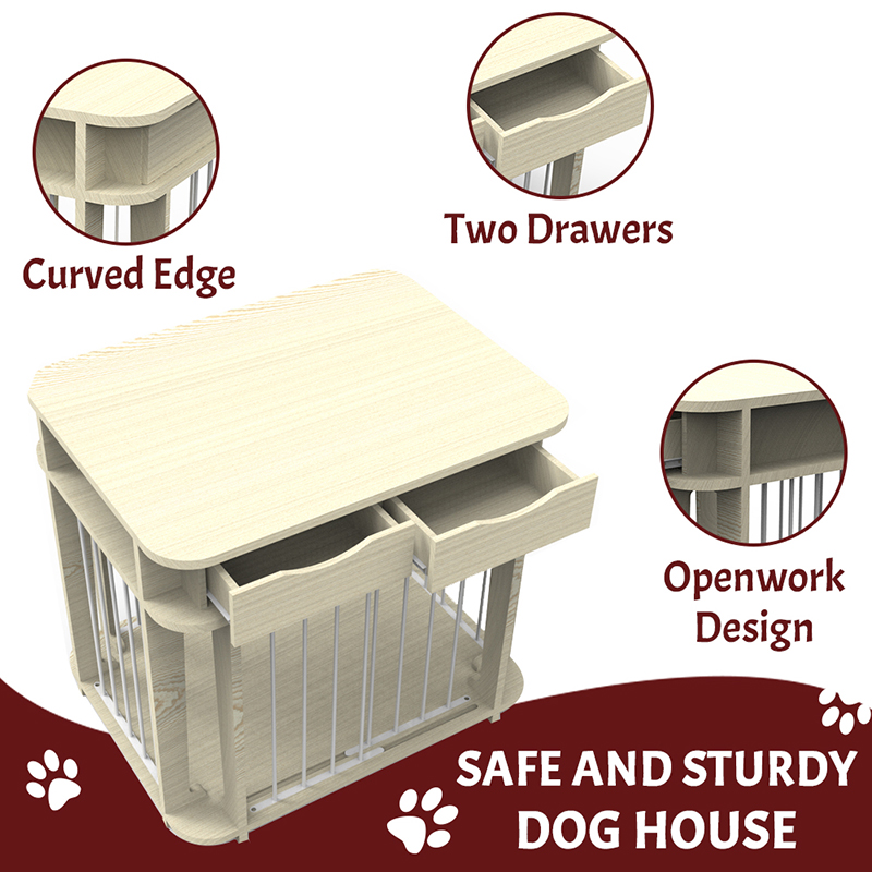 1. Ligtas at Malusog na Materyales: Estilo ng Muwebles na Dog Cage Napiling Solid Wood Frame at Kumbinasyon ng bakal na bakal na bakod, na may katulong na hindi nakakalason na patong, kahit na ligtas at walang pag-aalala ang alagang hayop.
